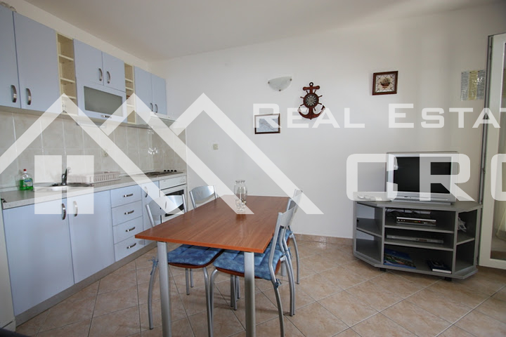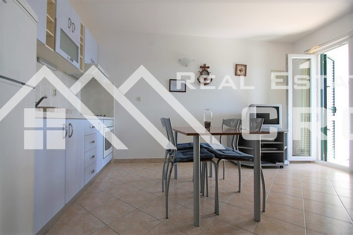 Stan ukupne stambene površine 47 m2 sastoji se od hodnika, kupaonice, spavaće sobe, kuhinje s blagovaonicom i dnevnog boravka. Stanu je pridružena terasa površine 10,7 m2 koja uživa prekrasan pogled na more.