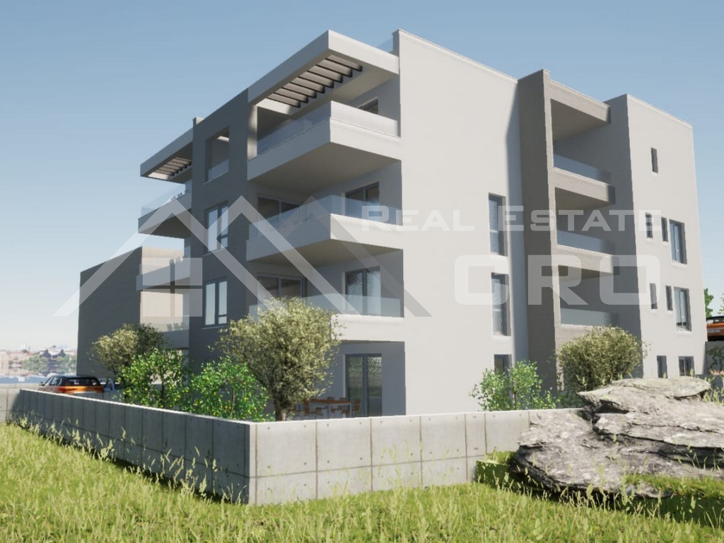 Nekretnine Čiovo – Kompletno namješten apartman s terasom i vrtom, u novogradnji blizu mora, na prodaju