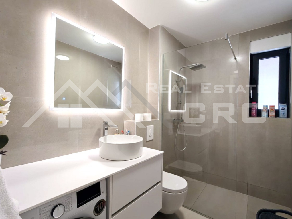 U ponudi imamo moderne apartmane smještene na izvrsnoj lokaciji, u blizini plaže i svih potrebnih sadržaja. Apartmani se nalaze u stambenoj zgradi s liftom. Nova zgrada ukupno ima 11 prostranih apartmana s terasama koje pružaju prekrasan pogled na more. Svaka stambena jedinica ima podno grijanje te uključuje jedno vanjsko parkirno mjesto.