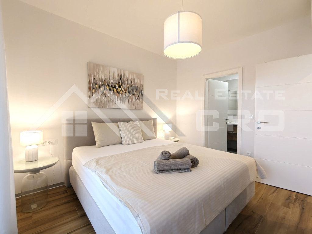 Ovaj ekskluzivni penthouse s krovnom terasom potpuno je namješten, opremljen i dekoriran u elegantnom, bezvremenskom stilu, čineći ga idealnim izborom za stalni dom, luksuzno ljetno utočište ili atraktivnu nekretninu za turistički najam.
